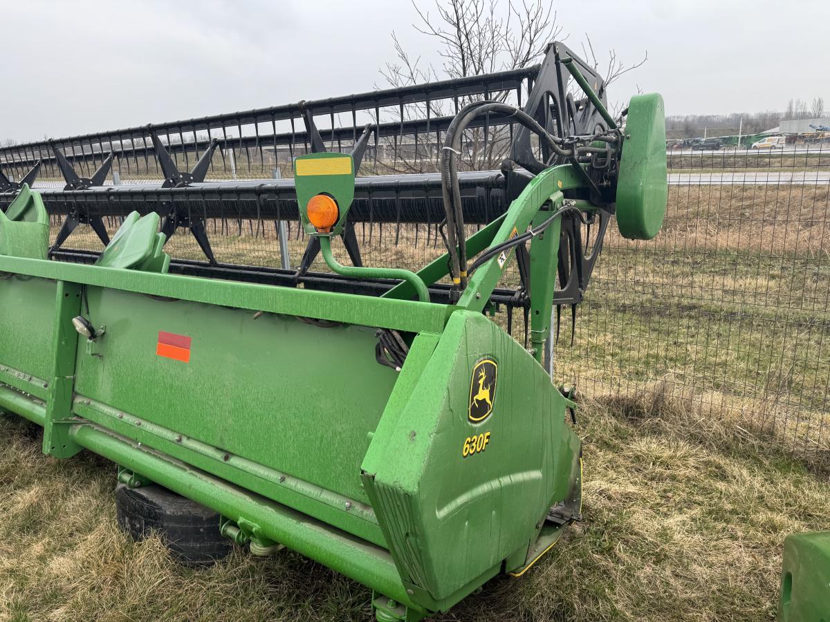 Дана жатка John Deerе 630F Hydra-Flex відрізняється від жаток 9-ї серії гідравлічним приводом плаваючою частини жатки, а також американським "ДжонДіровскім" так званим "Шумахером". Замість МКШ в цій жниварці використовується планетарний механізм, який відрізняється своєю надійністю і довговічністю. Швидке і надійне прибирання культур, наприклад, сої або гороху, забезпечується за рахунок гідравлічної системи HydraFlex жатки 630F і неперевершеною універсальності ріжучого механізму, які забезпечують прекрасне копіювання грунту. Це означає, що збирання врожаю виконується швидше. Продуктивність жатки 630F вище на 30 відсотків за рахунок використання інноваційних конструкторських розробок, найсучасніших технологій і високоякісного виготовлення. Жатка 630F з революційним ріжучим апаратом ідеально підходить для прибирання низькорослих культур, таких як соя; крім того, універсальний ріжучий апарат можна перевести в фіксоване положення для зрізання мілкозернових культур.