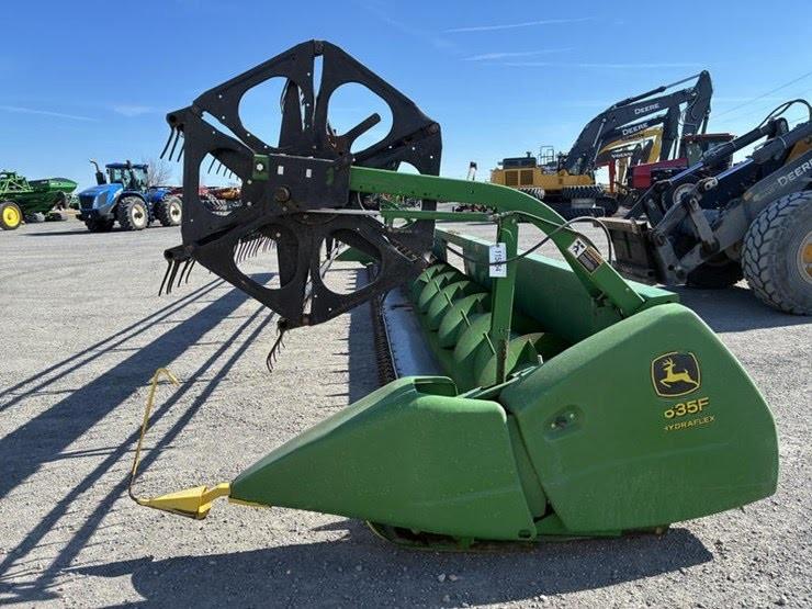 Дана жатка John Deerе 635F Hydra-Flex відрізняється від жаток 9-ї серії гідравлічним приводом плаваючою частини жатки, а також американським "ДжонДіровскім" так званим "Шумахером". Замість МКШ в цій жниварці використовується планетарний механізм, який відрізняється своєю надійністю і довговічністю. Швидке і надійне прибирання культур, наприклад, сої або гороху, забезпечується за рахунок гідравлічної системи HydraFlex жатки 635F і неперевершеною універсальності ріжучого механізму, які забезпечують прекрасне копіювання грунту. Це означає, що збирання врожаю виконується швидше. Продуктивність жатки 635F вище на 30 відсотків за рахунок використання інноваційних конструкторських розробок, найсучасніших технологій і високоякісного виготовлення. Жатка 635F з революційним ріжучим апаратом ідеально підходить для прибирання низькорослих культур, таких як соя; крім того, універсальний ріжучий апарат можна перевести в фіксоване положення для зрізання мілкозернових культур.