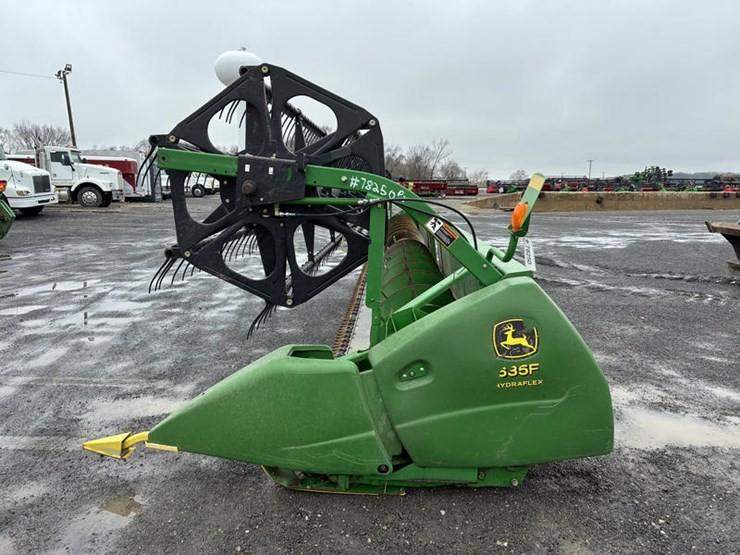 Дана жатка John Deerе 635F Hydra-Flex відрізняється від жаток 9-ї серії гідравлічним приводом плаваючою частини жатки, а також американським "ДжонДіровскім" так званим "Шумахером". Замість МКШ в цій жниварці використовується планетарний механізм, який відрізняється своєю надійністю і довговічністю. Швидке і надійне прибирання культур, наприклад, сої або гороху, забезпечується за рахунок гідравлічної системи HydraFlex жатки 635F і неперевершеною універсальності ріжучого механізму, які забезпечують прекрасне копіювання грунту. Це означає, що збирання врожаю виконується швидше. Продуктивність жатки 635F вище на 30 відсотків за рахунок використання інноваційних конструкторських розробок, найсучасніших технологій і високоякісного виготовлення. Жатка 635F з революційним ріжучим апаратом ідеально підходить для прибирання низькорослих культур, таких як соя; крім того, універсальний ріжучий апарат можна перевести в фіксоване положення для зрізання мілкозернових культур.