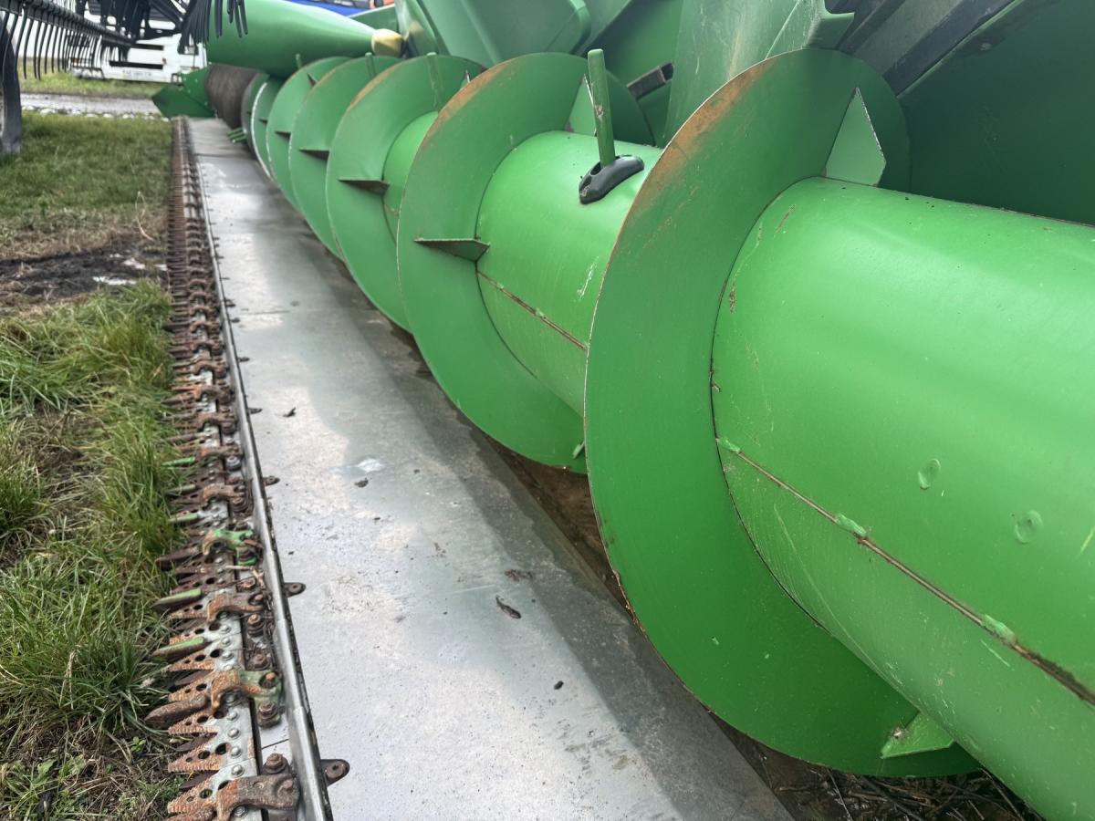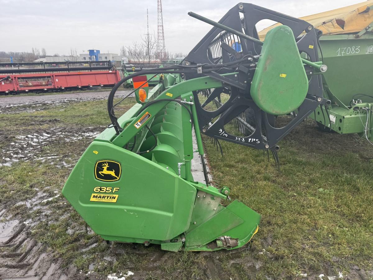 Дана жатка John Deerе 635F Hydra-Flex відрізняється від жаток 9-ї серії гідравлічним приводом плаваючою частини жатки, а також американським "ДжонДіровскім" так званим "Шумахером". Замість МКШ в цій жниварці використовується планетарний механізм, який відрізняється своєю надійністю і довговічністю. Швидке і надійне прибирання культур, наприклад, сої або гороху, забезпечується за рахунок гідравлічної системи HydraFlex жатки 635F і неперевершеною універсальності ріжучого механізму, які забезпечують прекрасне копіювання грунту. Це означає, що збирання врожаю виконується швидше. Продуктивність жатки 635F вище на 30 відсотків за рахунок використання інноваційних конструкторських розробок, найсучасніших технологій і високоякісного виготовлення. Жатка 635F з революційним ріжучим апаратом ідеально підходить для прибирання низькорослих культур, таких як соя; крім того, універсальний ріжучий апарат можна перевести в фіксоване положення для зрізання мілкозернових культур.
